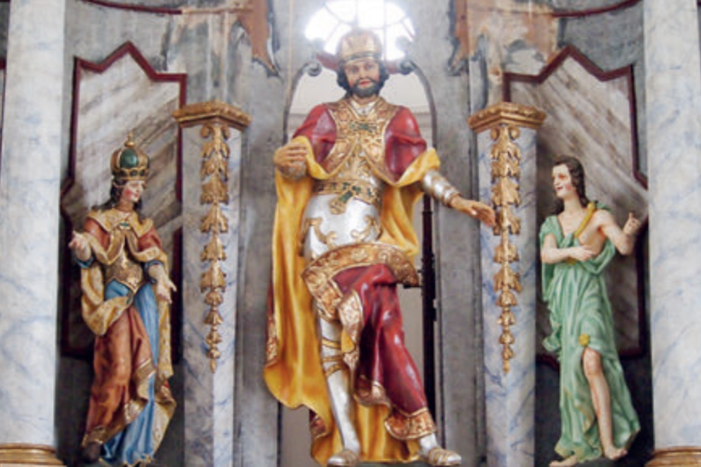 Tu promatramo Škrinju povlastica od hrastovine i željeza, naručitelja Ivana Zakmardija od Dijankovca (1643.), polikromiranu, pozlaćenu drvenu skulpturu sv. Ladislava, kraljice Jelena i anđela, rad kiparske radionice zagrebačkoga biskupa Jurja Branjuga iz 1739. godine, poprsja hrvatsko-ugarskih kraljeva neznanog autora u pješčenjaku (oko 1820.), kraljevske portrete Stjepana Arpadovića, svetog Stjepana, Ladislava Arpadovića, svetog Ladislava, Kolomana Arpadovića, Andrije II. Arpadovića, Bele IV. Arpadovića, Matije Korvina te Svetoga Ivana Pustinjaka.