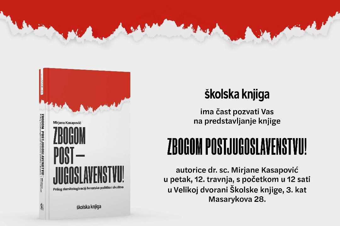 Predstavljanje te važne i zanimljive knjige u kojoj se Jugoslavija naziva „najneuspješnijom europskom državom 20. stoljeća” održat će se u petak, 12. travnja, u 12 sati u Velikoj dvorani Školske knjige u Zagrebu. O knjizi će govoriti Dražen Budiša, izv. prof. dr. sc. Zlatko Begonja, Gordan Malić i dr. sc. Ante Žužul, predsjednik Upravnog odbora Školske knjige. Svečanost će voditi Zrinka Turalija i urednik dr. sc. Deniver Vukelić, a ulomke iz djela kazivat će glumac Vedran Mlikota.