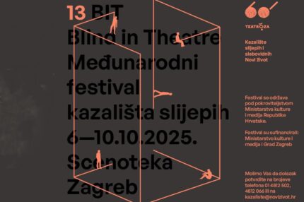 Kazalište slijepih i slabovidnih Novi život otvara 13. međunarodni festival kazališta slijepih i slabovidnih BIT /blind in theatre/ predstavom Anamarije Budimir: VARIJACIJE. Festival traje 6.-10.10.2025. Za otvaranje festivala potrebno je rezervirati ulaznice (01 4812 066, 4812 502 ili kazaliste@novizivot.hr). Na sve predstave ulaz slobodan. Pročitajte više