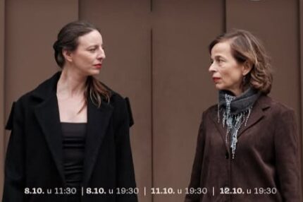 Izvedbe: 8. listopada u 11.30 sati, 8. listopada u 19.30 sati, 11. listopada u 19.30 sati, 12. listopada u 19.30 sati. Interpretacija Alme Price i Jadranke Đokić. Autorica teksta je dramaturginja Vedrana Klepica. Publika postaje aktivni sudionik izvedbe. Pročitajte više