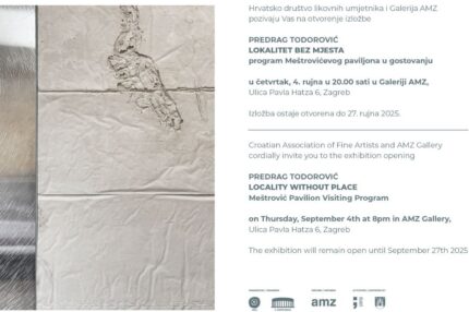 Predrag Todorović, umjetnik čiji je medij sâm eksperiment, u ovoj se izložbi predstavlja radovima u kojima kombinira proces otiskivanja s ambijentalnim pristupom prostoru, stvarajući postav nalik svojevrsnom simboličkom arheološkom nalazištu fragmenata. Izložba ostaje otvorena do 27. rujna. Pročitajte više