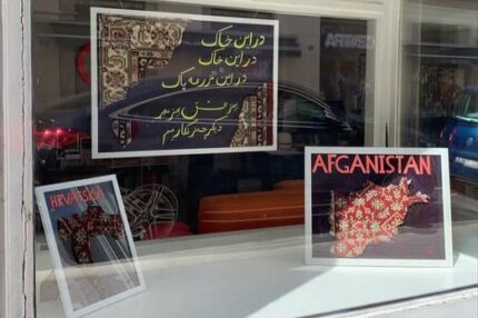 Na izlogu Domina (Petrinjska 38) može se pogledati triptih afganistanskog umjetnika Noora Mohammada Azzizija.