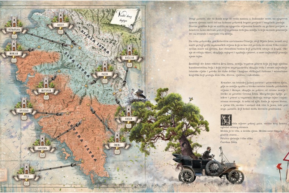 To je mala oslikana riznica priča iz narodne predaje Istre, koja predstavlja mitološka stvorenja iz priča naših starih i smješta ih u povijesne krajolike i drevne kaštele Istre. Knjiga predstavlja 11 mitoloških stvorenja Istre i 11 kaštela i povijesnih lokacija.